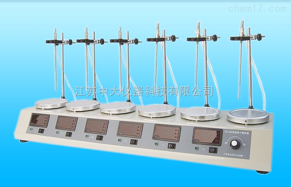 HJ-6A多头恒温磁力加热搅拌器是实验室工作人员对各种液体进行匀和搅拌的仪器设备,也是配套各类分析仪器的常规产品。该产品已被国内外大中院校、环保监测、卫生防疫、石油化工等实验室广泛采用。该仪器均采用永磁直流电机,具有噪音低、振动小、力矩大、搅拌*等优点。6联恒温磁力搅拌器是根据用户需求在原六联磁力搅拌器基础上增加了智能温度控制装置的升级产品,具有加热温度稳定的功能。