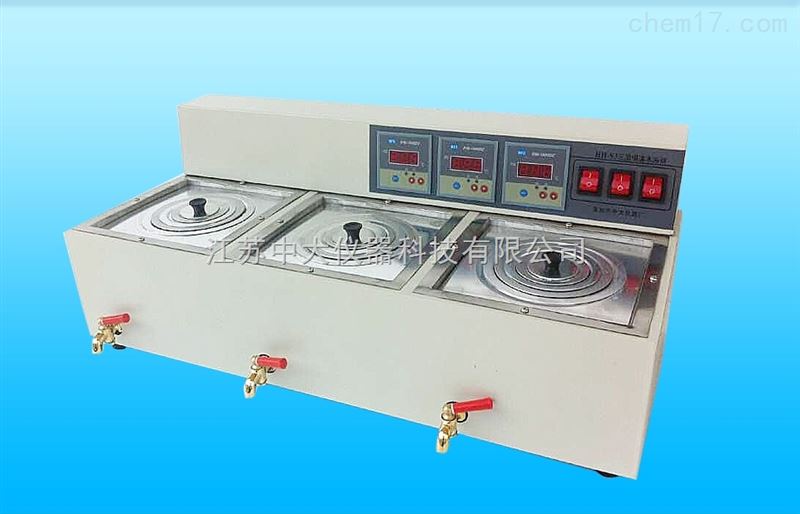 本产品系水槽式,内胆采用优质不锈钢材料,外壳采用优质冷轧板喷塑而成,加热管直接在水中加热快省电,并装有智能数显恒温控制系统,使用者可根据需要设定温度。三只尺寸160X160X115MM水槽可分别单独控制温度。