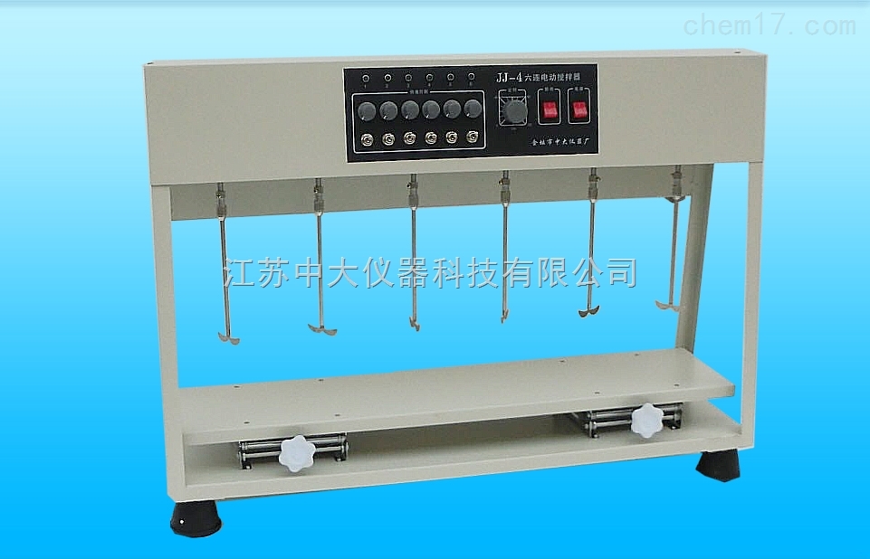 JJ-4型电动搅拌器是根据用户需要而设计生产的,具有定时、调速、稳压、异步六工位六速运转以及升降等功能。其电机采用永磁直流电机,具有噪声低,调速明显,低速运转时力矩大等特点。搅拌棒采用不锈钢制作,增强了抗腐蚀能力。该搅拌器广泛应用于科研、环保、卫生、石油、冶金、化工、自来水厂以及各大中专院校的实验室。